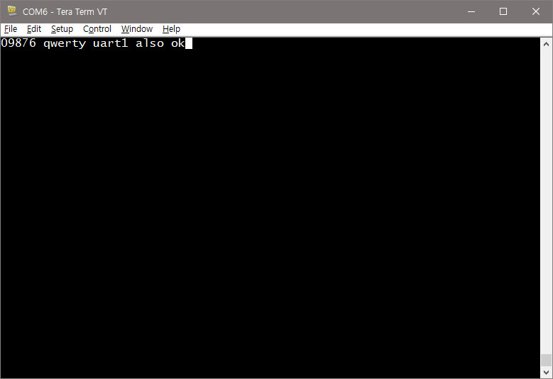 콘솔창의 baudrate를 9600으로 변경한 후 같은 방법으로 UART1의 동작을 확인한다.