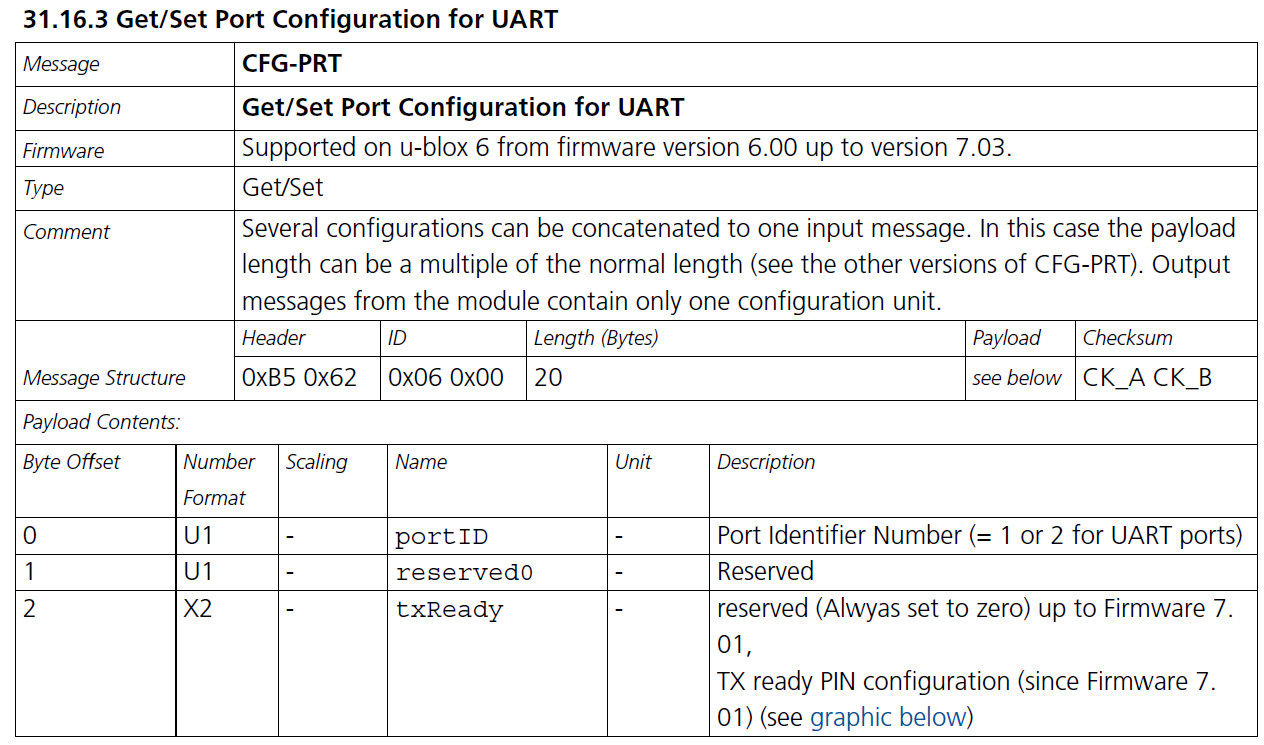 첫번째로 구현할 UBX 패킷은 CFG-PRT이다.